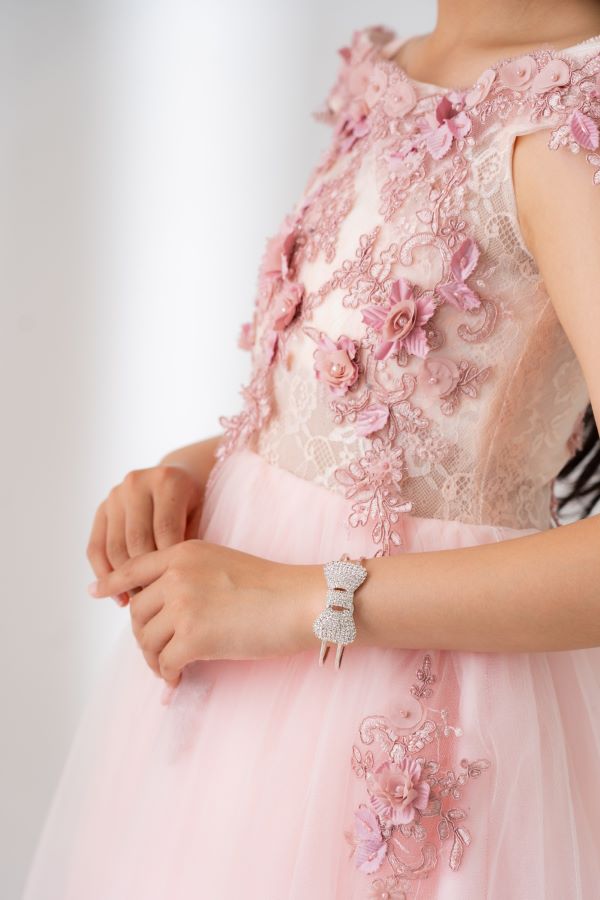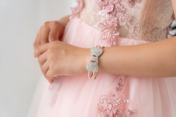 キラキラリボンモチーフが可愛いブレスレットです。ドレスを華やかに演出してくれるアクセサリーです。