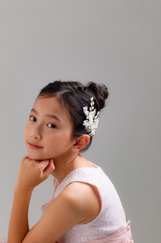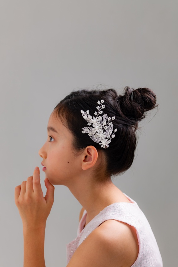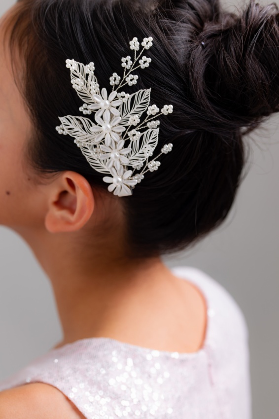 少し幅の広いホワイトパールビーズが施されたカチューシャです。お顔周りも華やかな印象となります。発表会・結婚式・撮影に幅広くご利用頂けます。