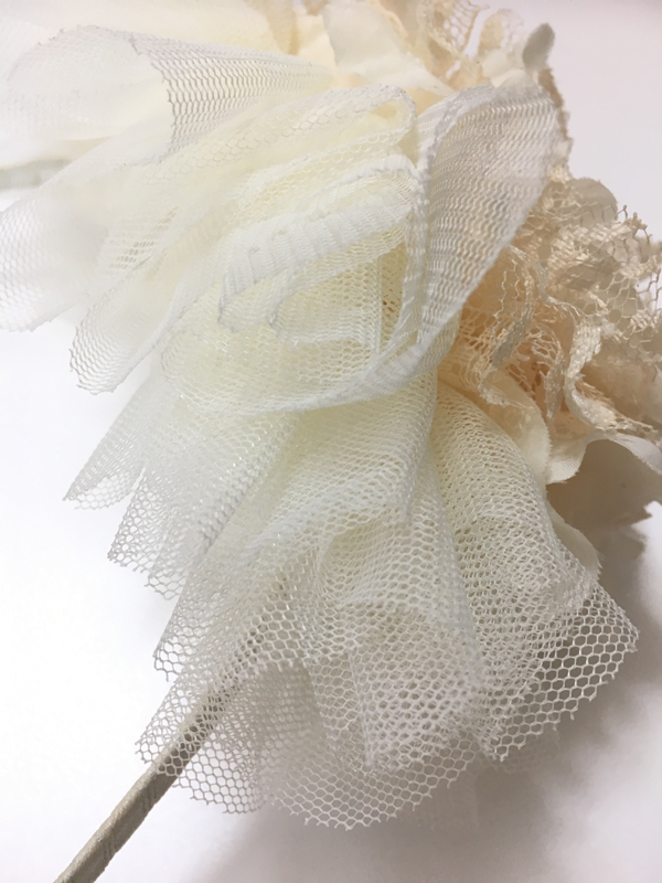 やわらかなチュール素材の大きなお花のが存在感あり、特別感のあるヘッドドレスです。