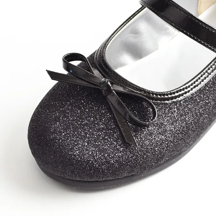 きらきらグリッターが華やかなストラップ付きコーディネートしやすいでシルバー系す。ピアノ発表会・結婚式参列の際に人気のシューズです。